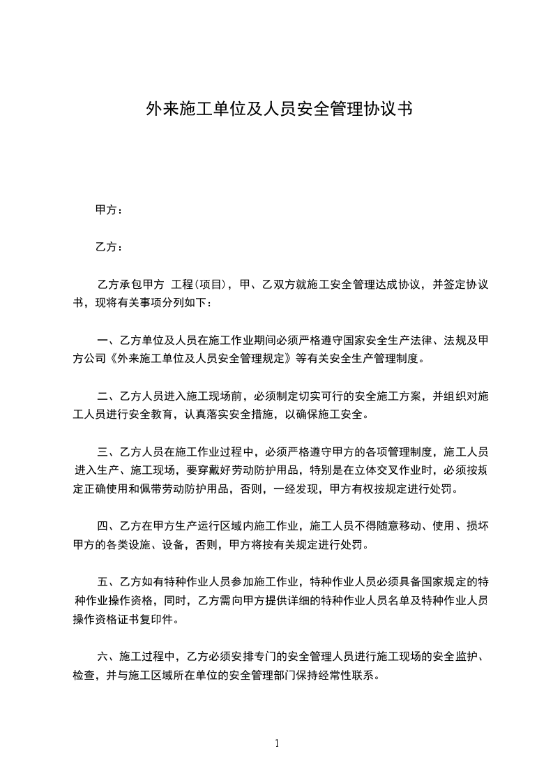 一、乙方单位及人员在施工作业期间必须严格遵守国家安全生产法律、法规及甲方公司《外来施工单位及人员安全管理规定》等有关安全生产管理制度。