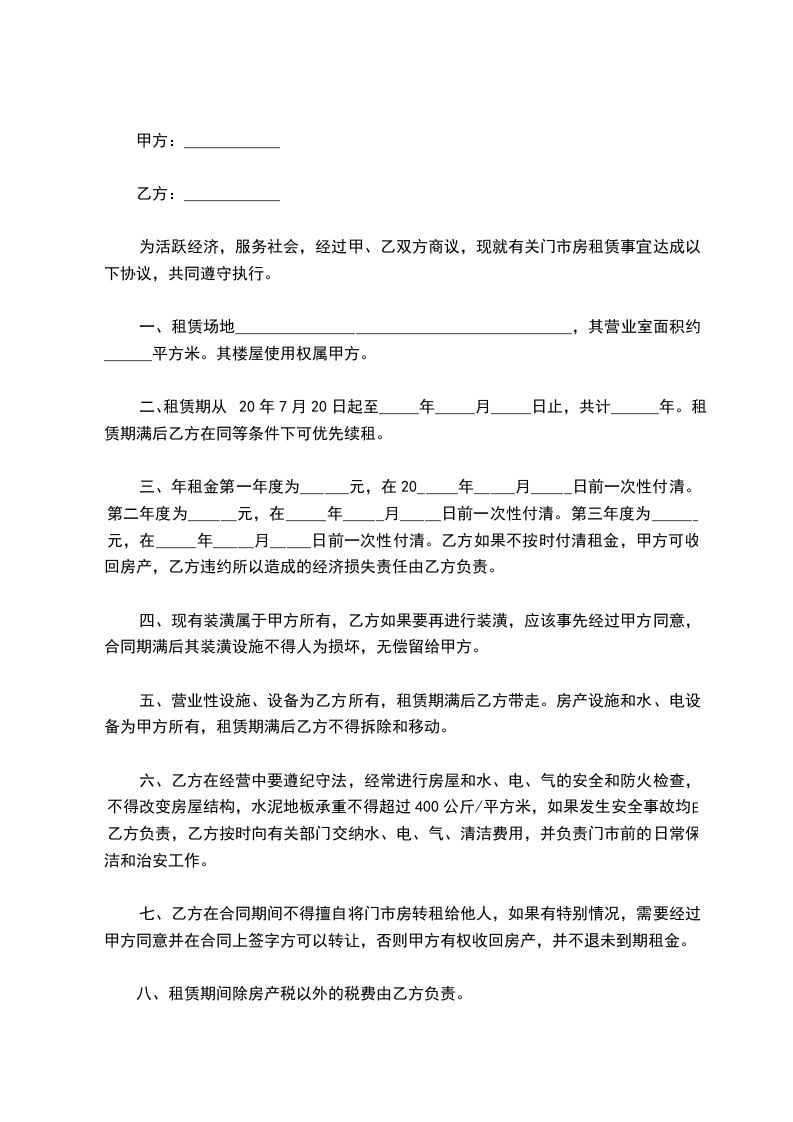 出租方(简称甲方)