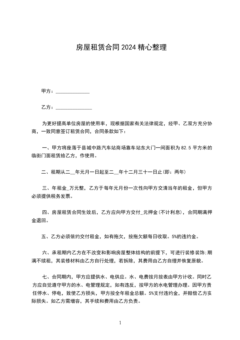一、甲方将座落于县城中路汽车站商场靠车站东大门一间面积为82.5平方米的临街门面租赁给乙方,作使用。