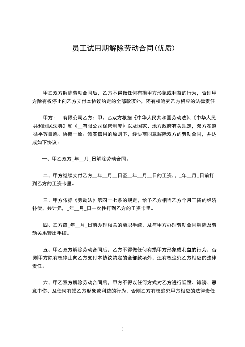 甲、乙双方根据《中华人民共和国劳动法》、《中华人民共和国劳动合同法》和《__有限公司保密制度》以及国家、地方政府有关规定,双方在遵循平等自愿、协商一致、诚实信用的原则下,经协商同意解除双方的劳动合同,并达成如下协议: