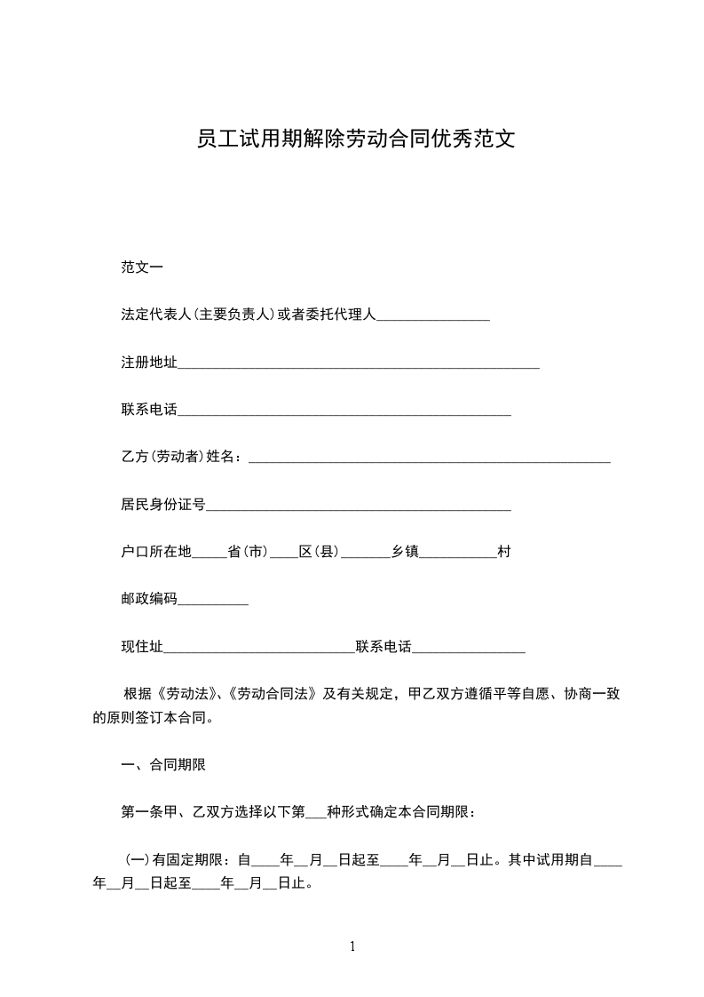 一、合同期限