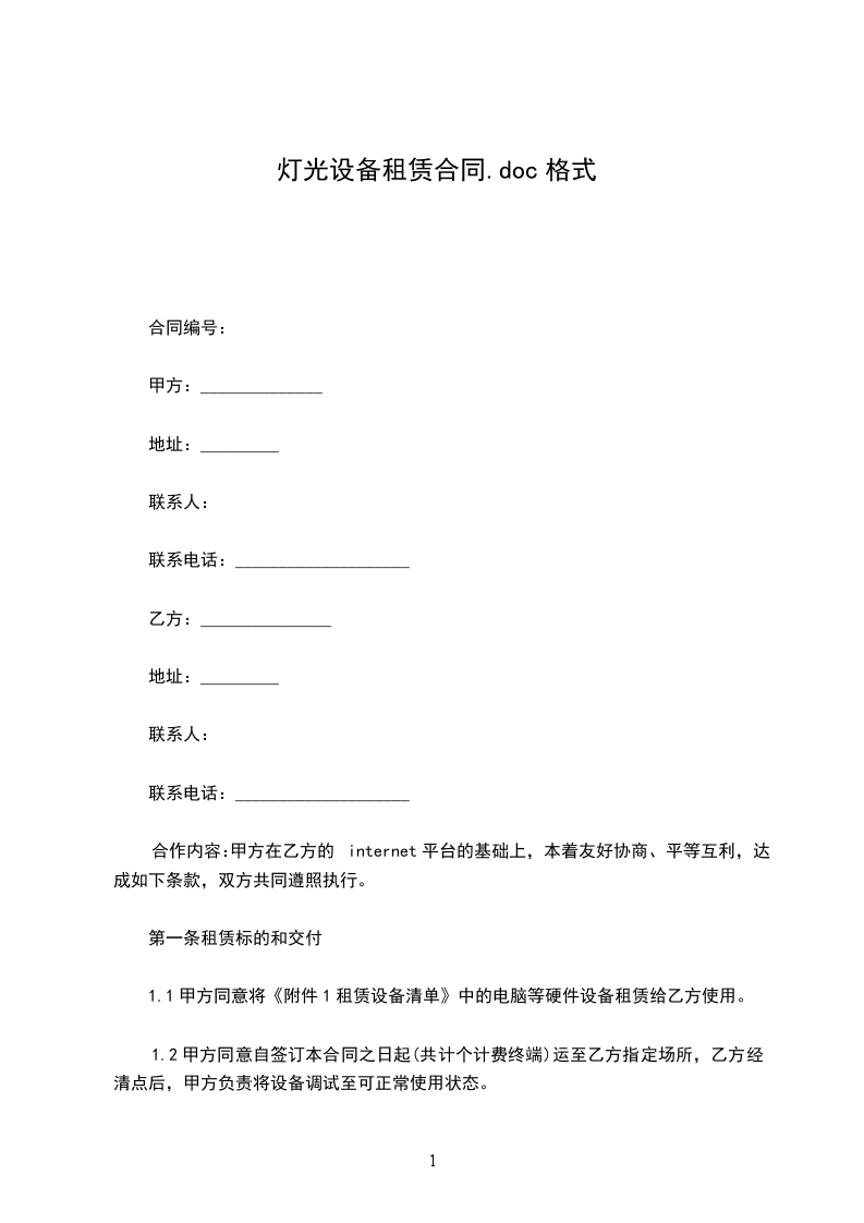 3.总租金为_________元,从承租人吸收所租设备之日开端计租。在租赁期内,月租为_________元,应于每月_________号前交入_________银行的出租人账户。