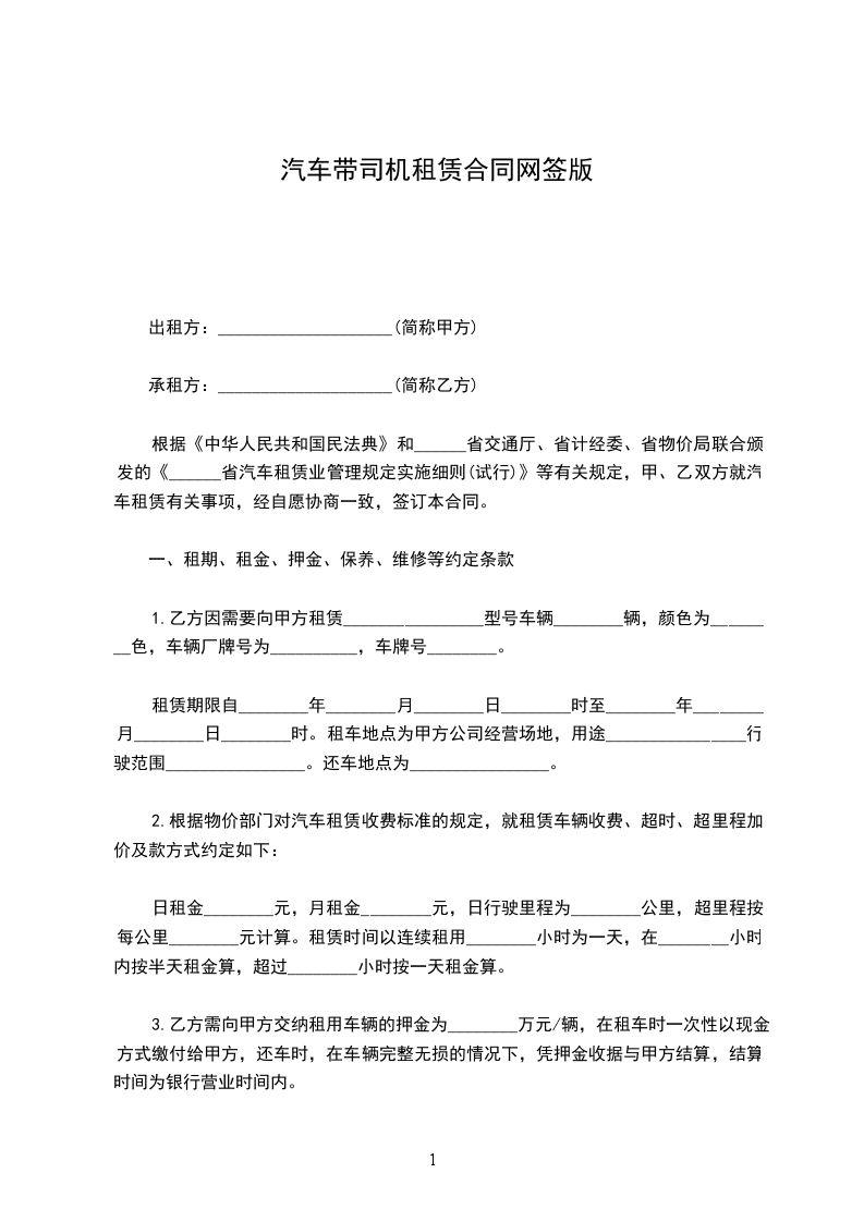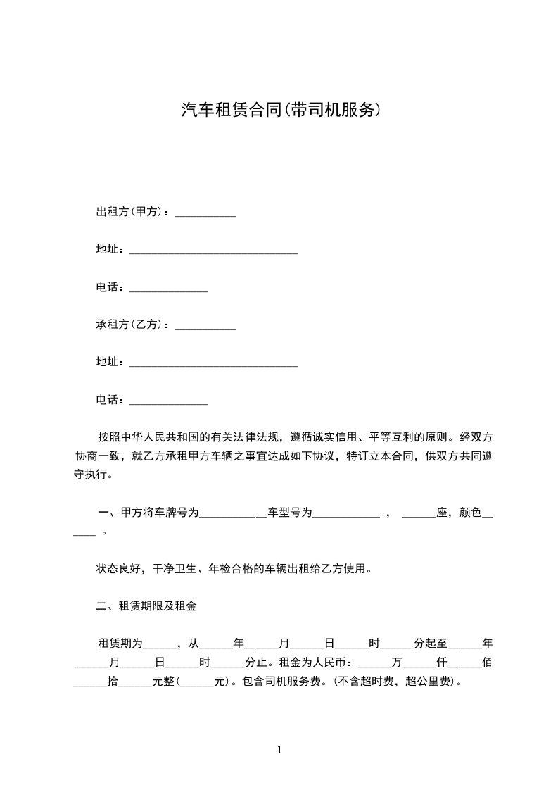 日租金________元,月租金________元,日行驶里程为________公里,超里程按每公里________元计算。租赁时间以连续租用________小时为一天,在________小时内按半天租金算,超过________小时按一天租金算。