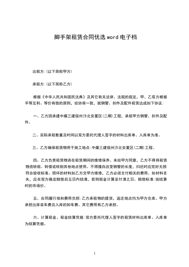 5.租赁移动脚手架运费由甲方出。