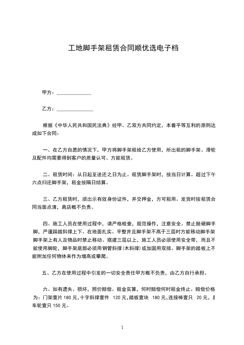 3.如果归还脚手架时如有损坏按照合同价格标赔偿
