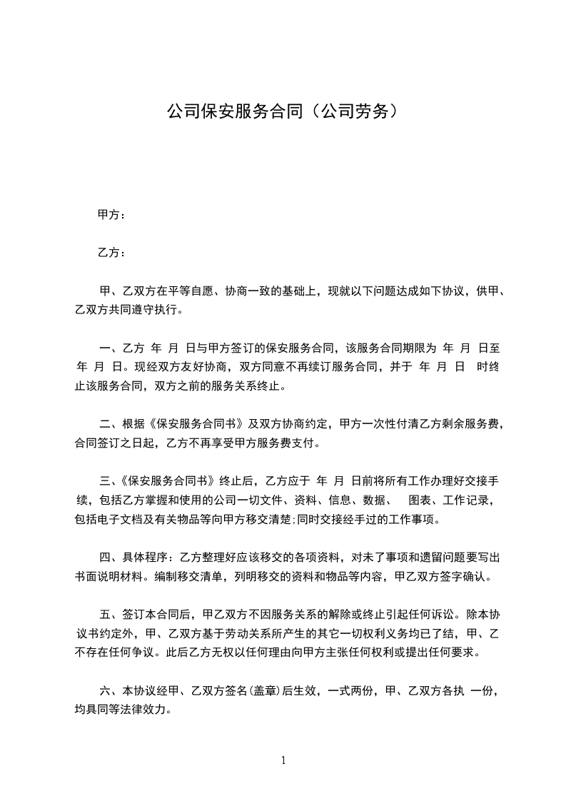 依据中华人民共和国有关法律法规,本着诚实信用、平等互利的原则,甲乙双方经友好协商,就乙方为甲方提供保安服务事项达成一致意见,签订本合同。