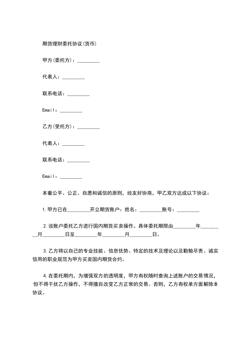 3.乙方将以自己的专业技能、信息优势、特定的技术及理论以及勤勉尽责、诚实信用的职业规范为甲方买卖国内期货合约。