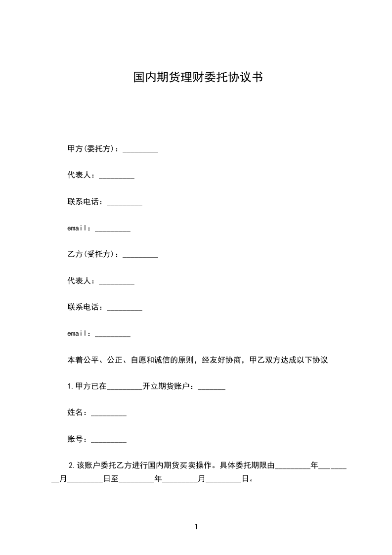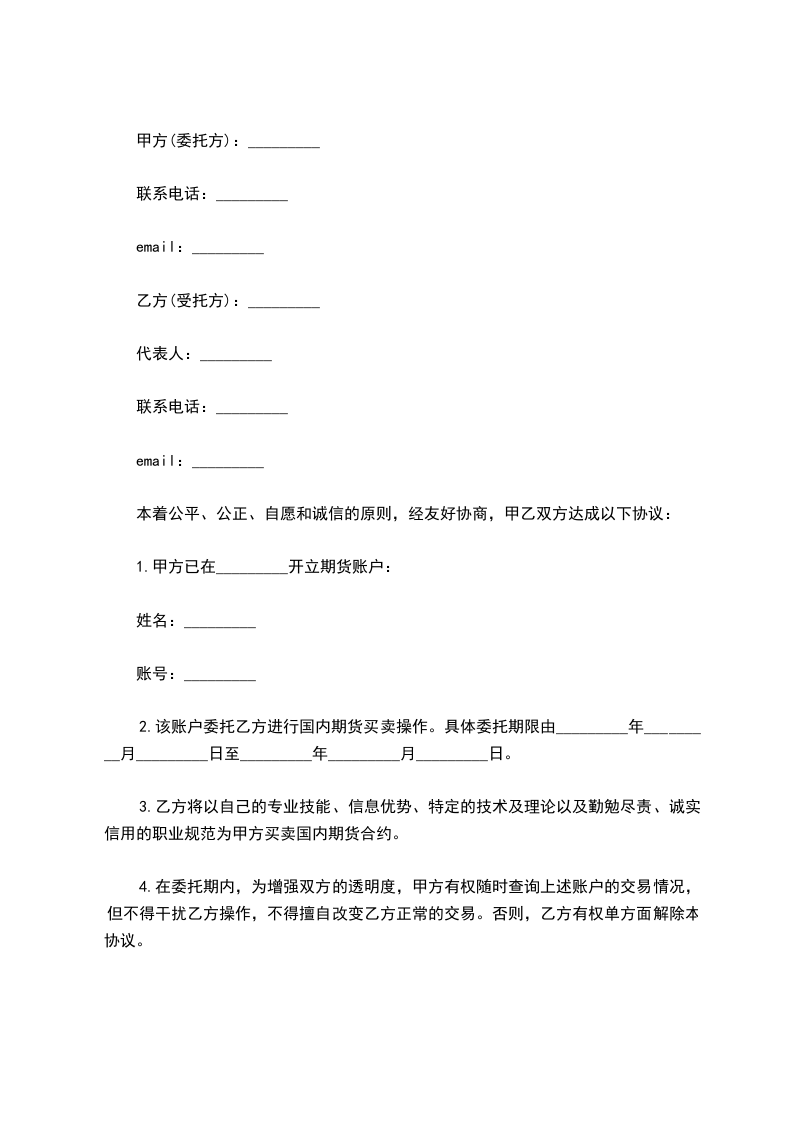 2.该账户委托乙方进行国内期货买卖操作。具体委托期限由_________年_________月_________日至_________年_________月_________日。