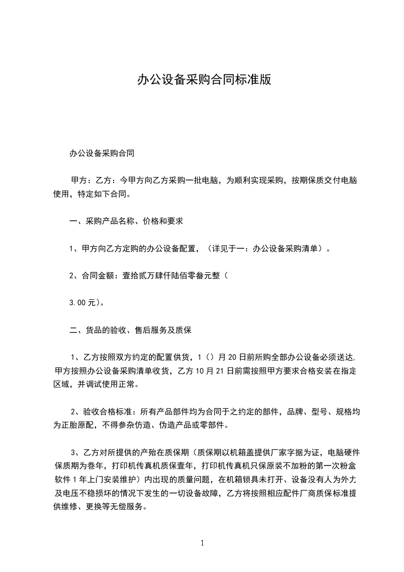 甲方因办公需求,向乙方采购办公用品,具体详见下表: