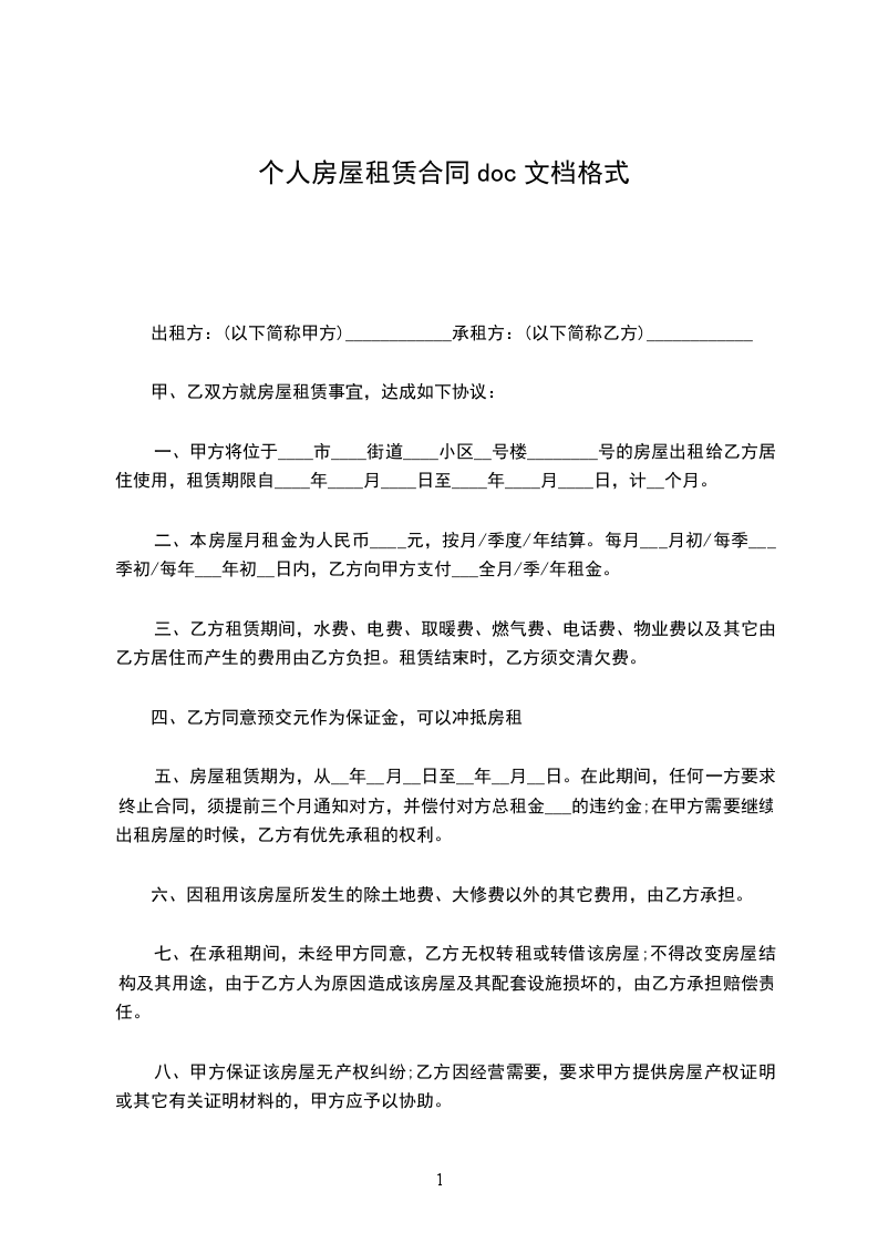简洁版个人房屋租赁合同范本一出租方(甲方):________________承租方(乙方):________________甲、乙双方就房屋租赁事宜,达成如下协议: