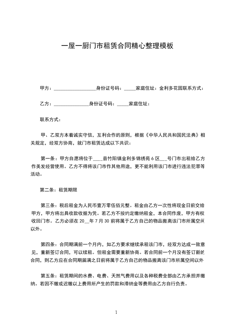第十条:合同期间,因乙方自身原因不想继续使用该门市,甲方不予退还剩余租金,并且乙方有义务将钥匙、水卡、天然气卡、天然气本1个等手续当天返还给甲方,否则应当承担人民币壹仟元违约金。