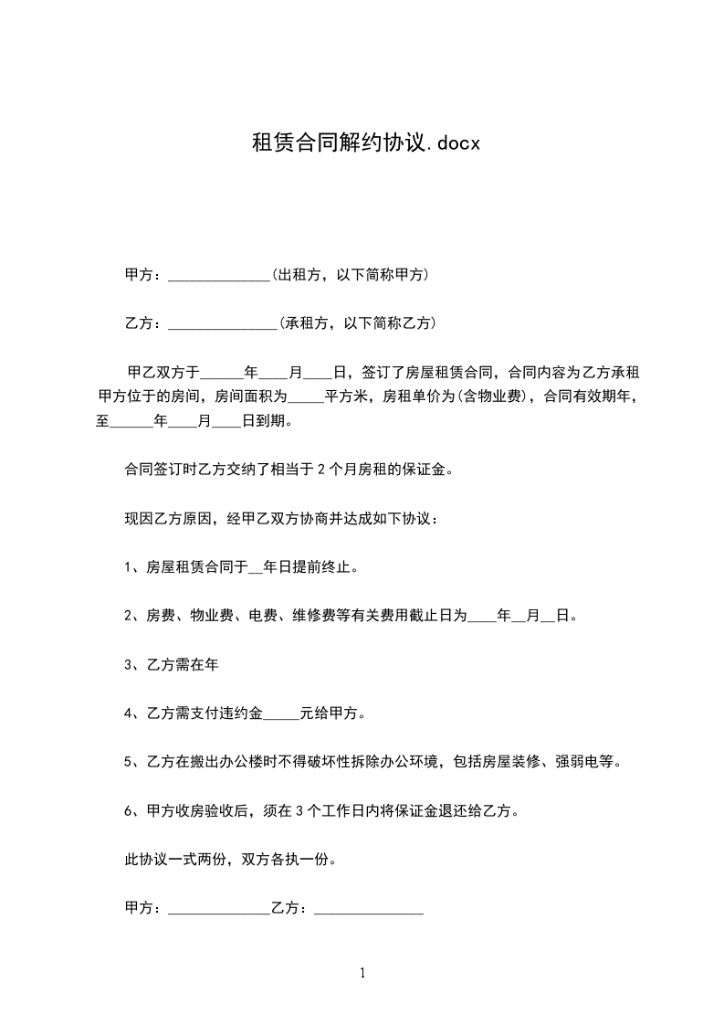1、房屋租赁合同于__年日提前终止。