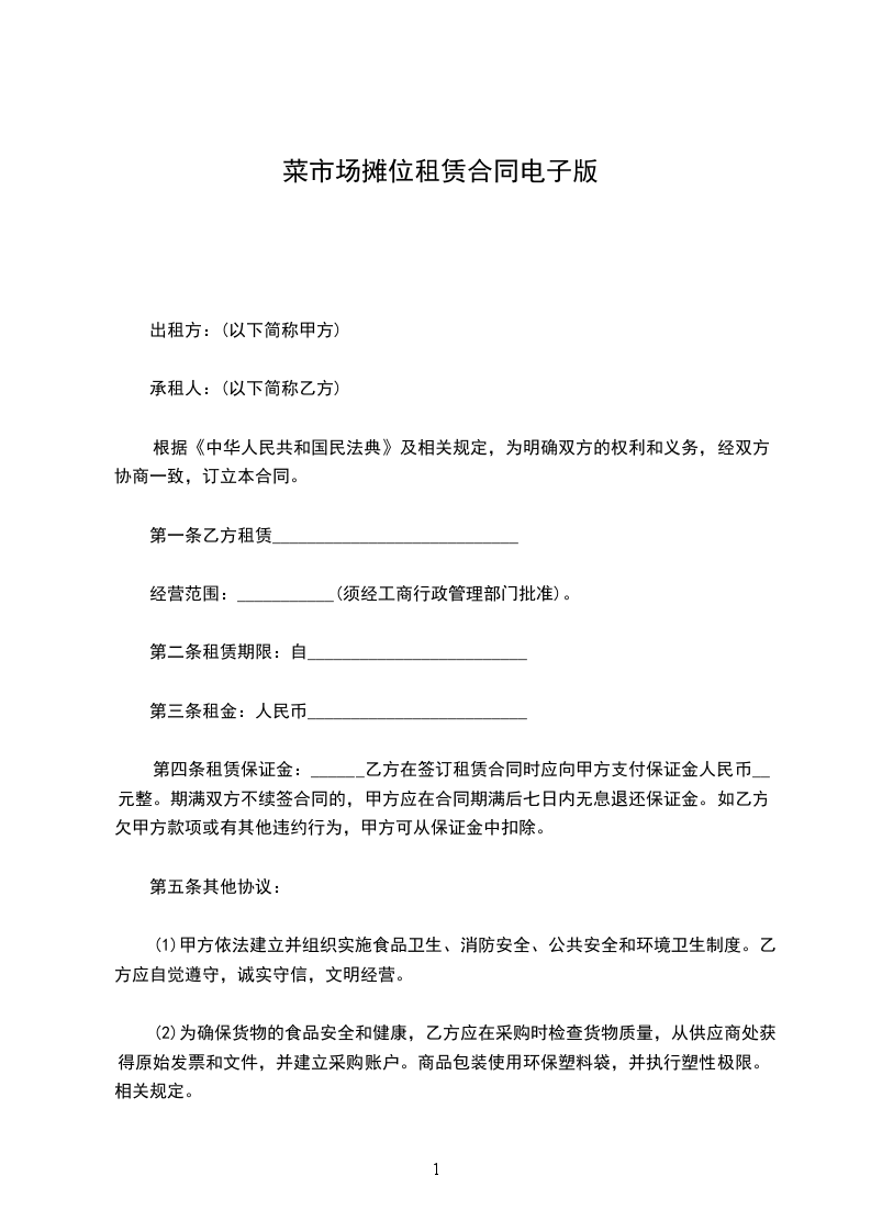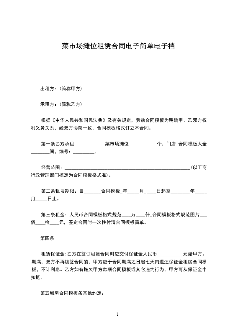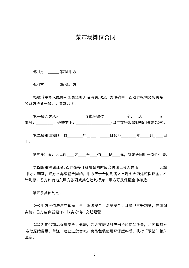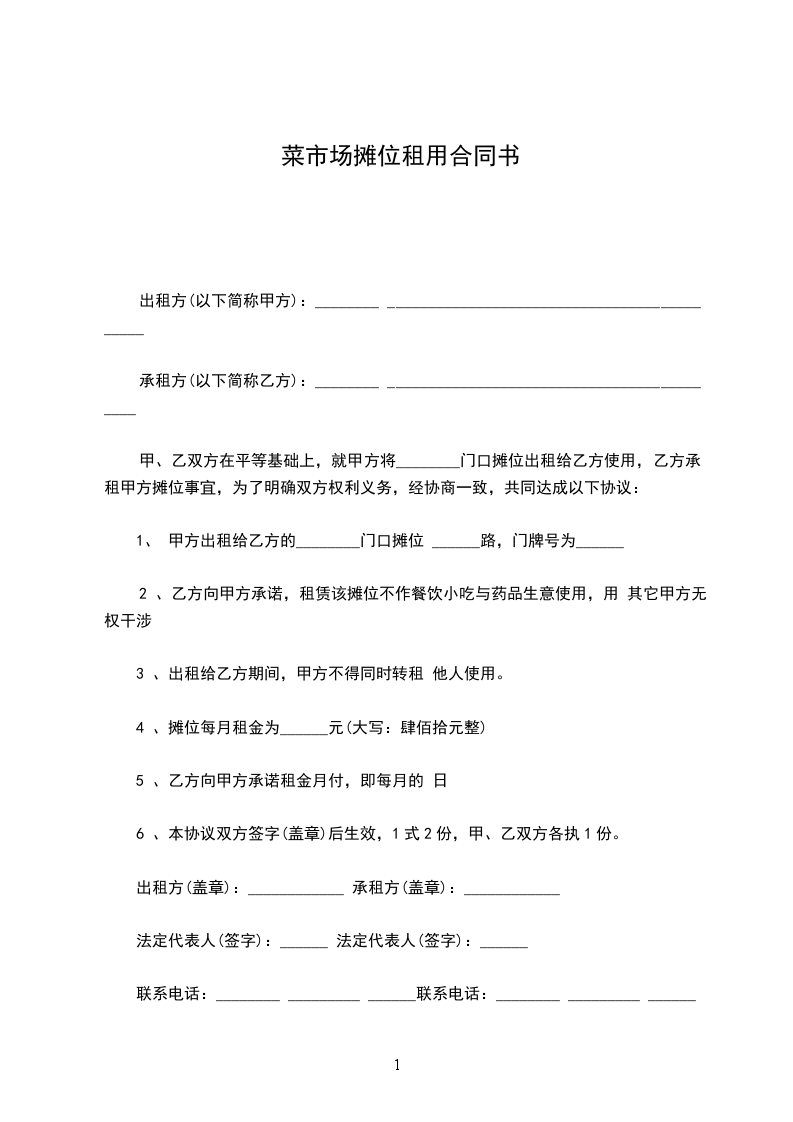 第一条乙方承租_____________菜市场摊位____________个,门店_合同模板大全________间,编号:_________。