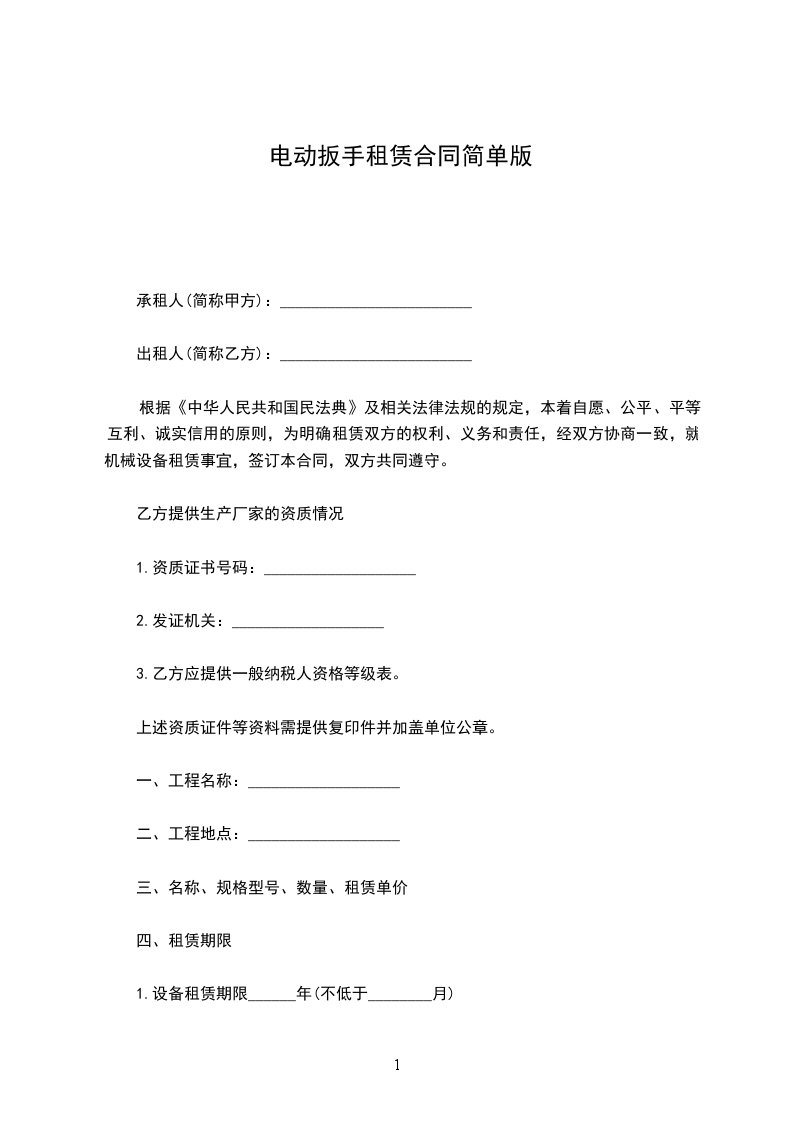 本协议的租赁期为_______年。