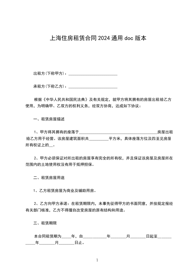 承租方(下称乙方):_________________________