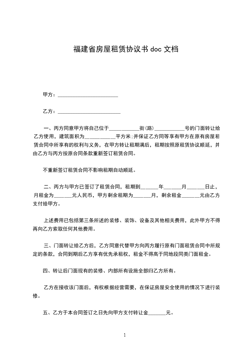 1、甲方将其拥有的座落于阜阳市西苑一幢号房屋出租给乙方用于经营。该房屋建筑面积共平方米,具体座落方位及四至见房屋所有权证上的__。