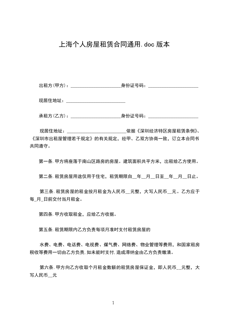 一、甲方将座落在深圳市房产建筑面积计____平方尺,租给乙方作使用,租期为____年,从_____年____月____日起至____年____月____日止。
