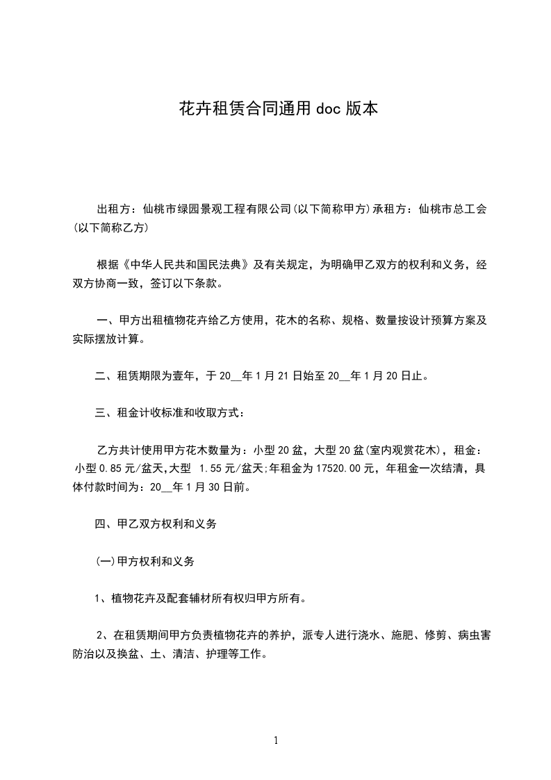 本合同自______年__月__日至______年__月__日,合同期限____年。花卉合同到期后自动顺延一年,如需解除,提前30天书面通知对方。