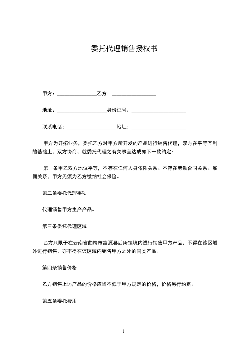 1.乙方需在销售区域内尽力拓展客户,并严格执行甲方的产品政策和价格政策。