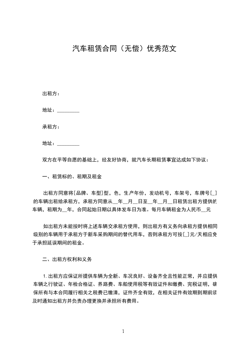 双方在平等自愿的基础上,经友好协商,就汽车长期租赁事宜达成如下协议: