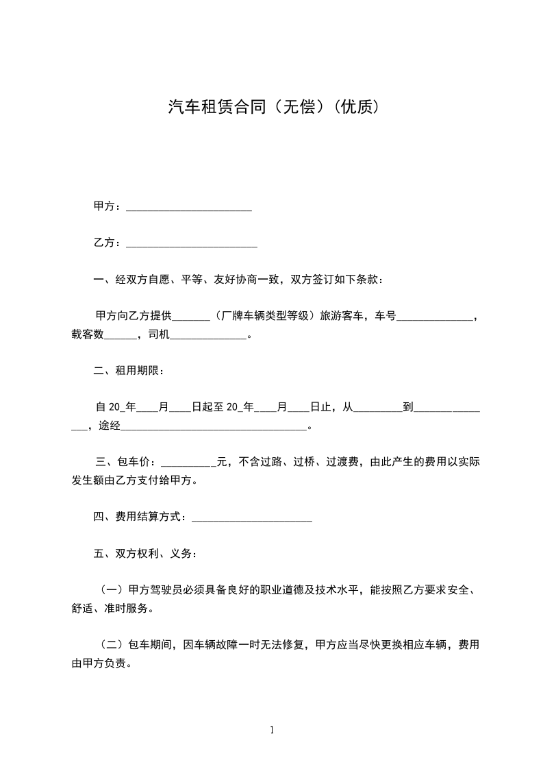 4.合同终止时,承租方应返还车辆。如有延迟,出租方可按[_]元/天收取租金。