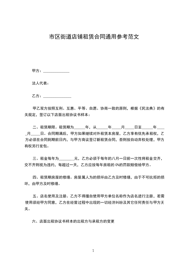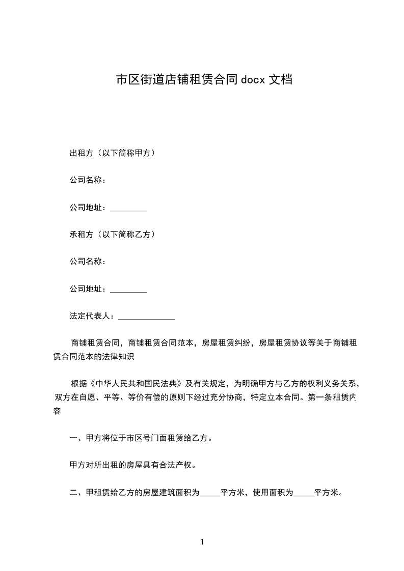 店铺商铺租赁合同样本出租方(以下简称甲方):___________