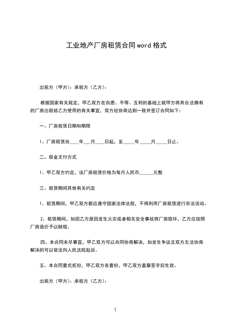 根据国家有关规定,甲乙双方在自愿、平等、互利的基础上就甲方将其合法拥有的厂房出租给乙方使用的有关事宜,双方经协商达到一致并签订合同如下: