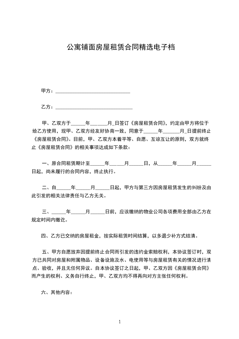 一、原合同租赁期计至______年______月______日,从______年______月______日起,尚未履行的合同内容,终止执行。