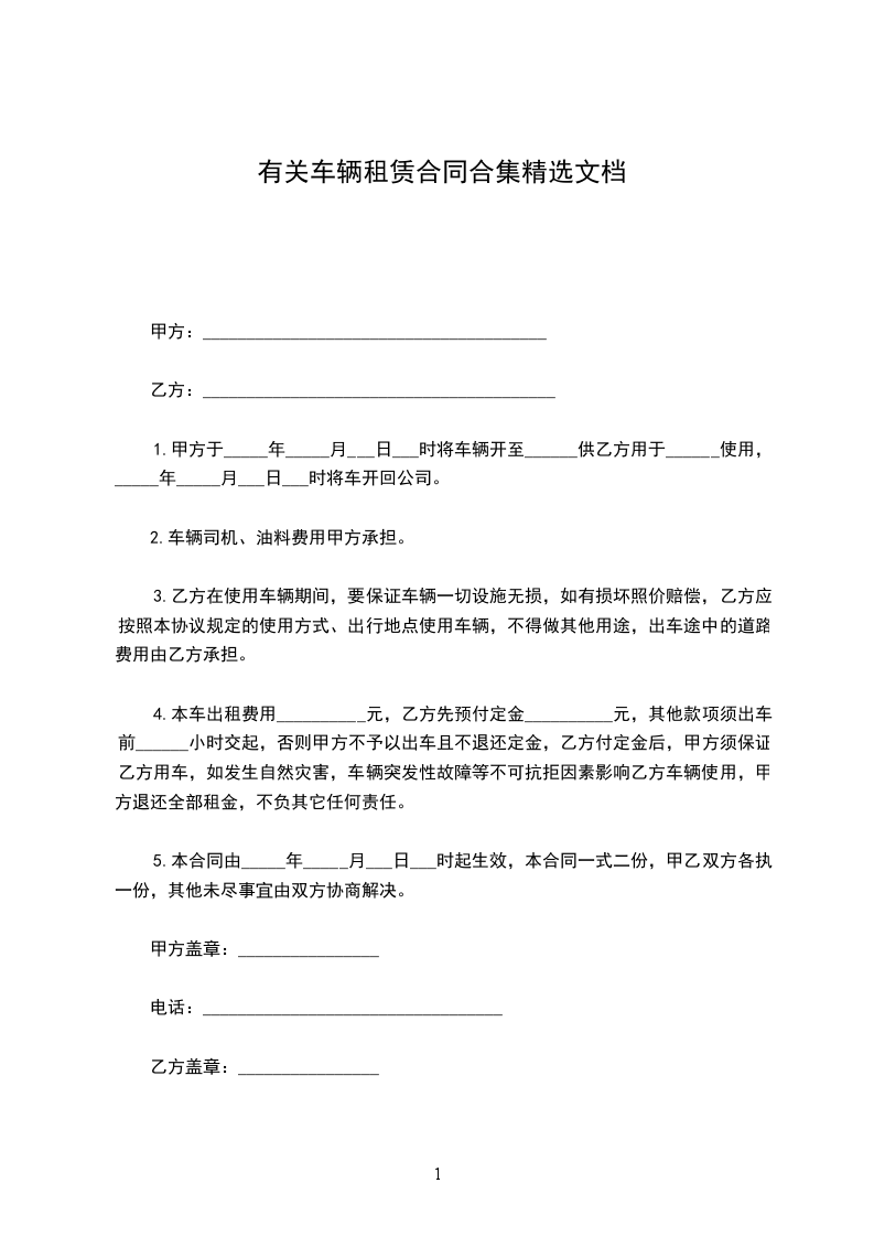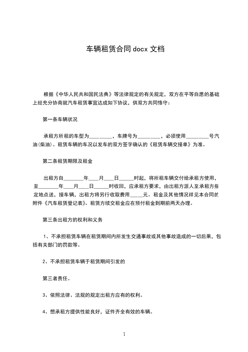 经双方友好协商,乙方租用甲方车辆从_年_月_日_时_分起至_年_月_日_时_分止。车牌号:苏_______,驾驶员_______,证号_______。计价每日租金_______元/24小时/公里,月租金_______元,本车现金价格_______万元。