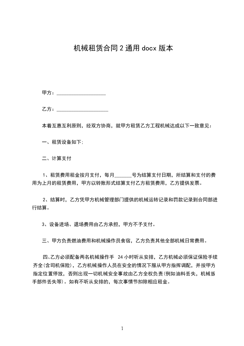 本着互惠互利原则,经双方协商,就甲方租赁乙方工程机械达成以下一致意见: