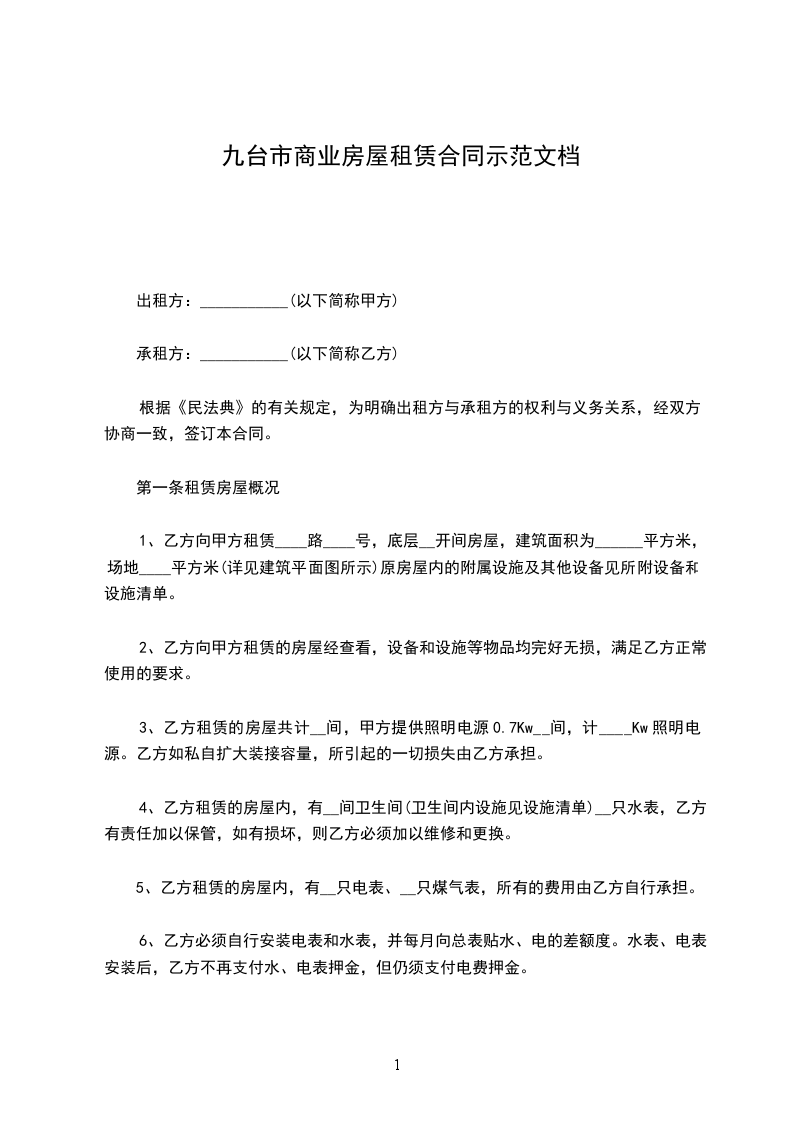 第六条租赁期限