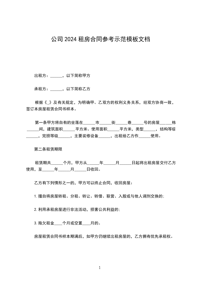 第一条甲方将自有的坐落在______市______街______巷______号的房屋______栋______间,建筑面积______平方米、使用面积______平方米,类型______,结构等级______,完损等级______,主要装修设备______,出租给乙方作______使用。