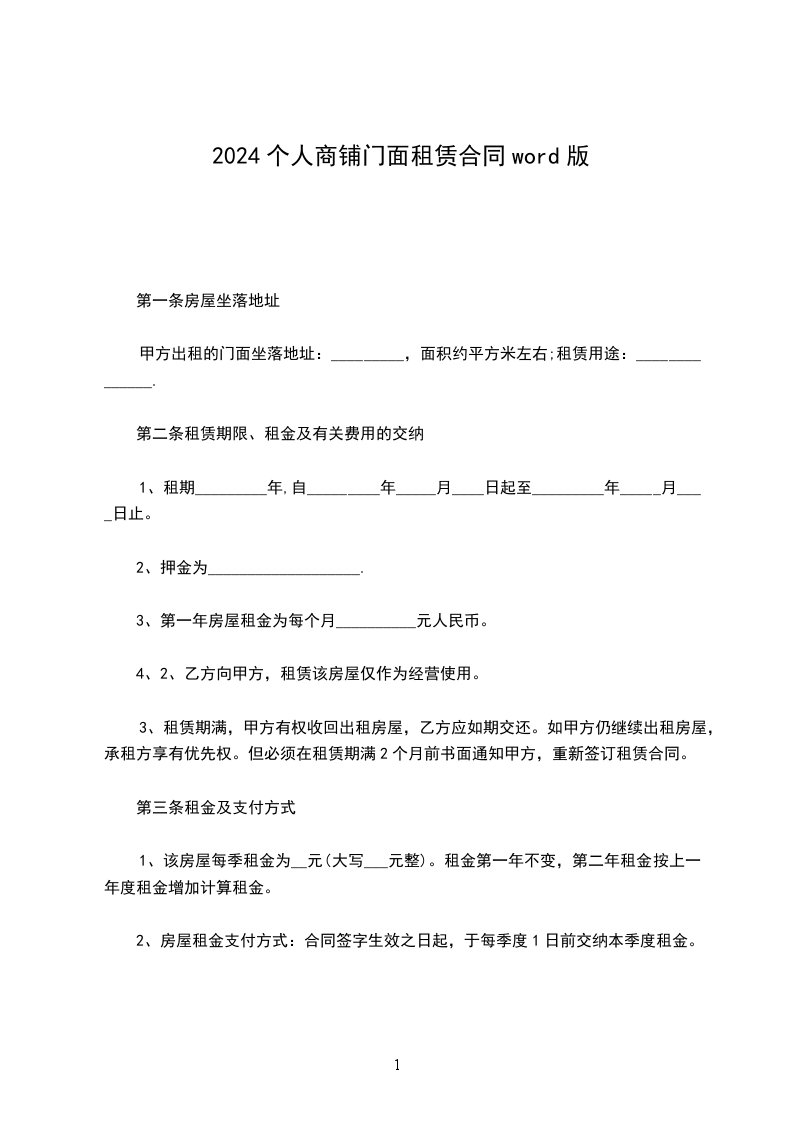 1、该房屋每季租金为__元(大写___元整)。租金第一年不变,第二年租金按上一年度租金增加计算租金。