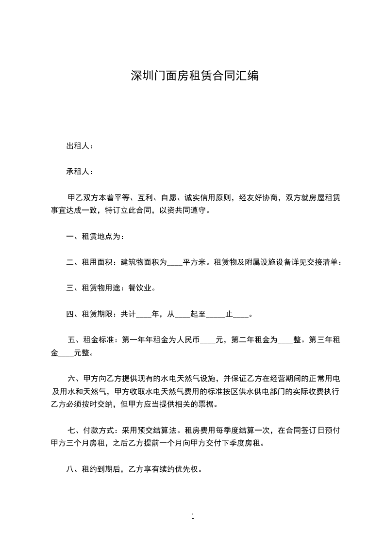 七:租赁期间,乙方不得将店面转让给他人使用,乙方-1-在租赁未到期间,需要解除合同时,甲方将没收乙方押金。如乙方找到他人出租,必须得先通过甲方同意,由甲方与他人签订合同后,再退还乙方押金。