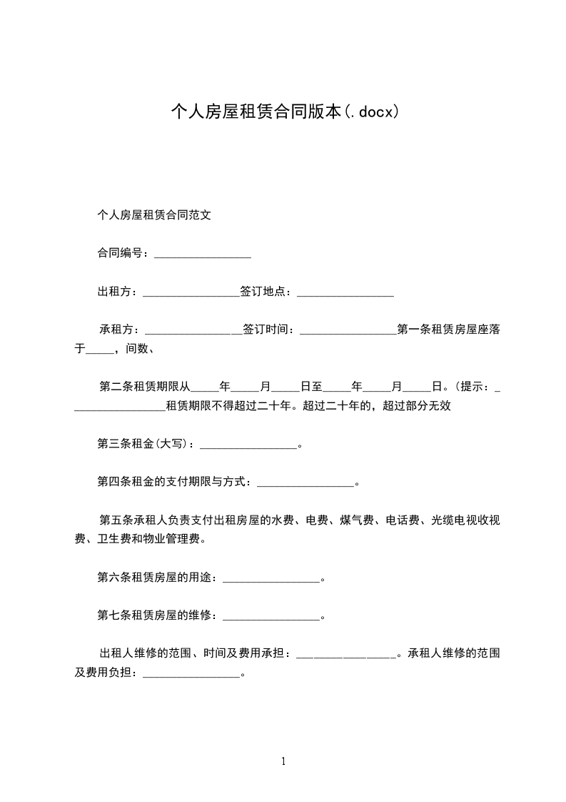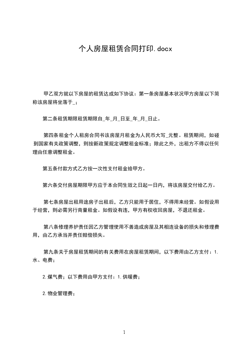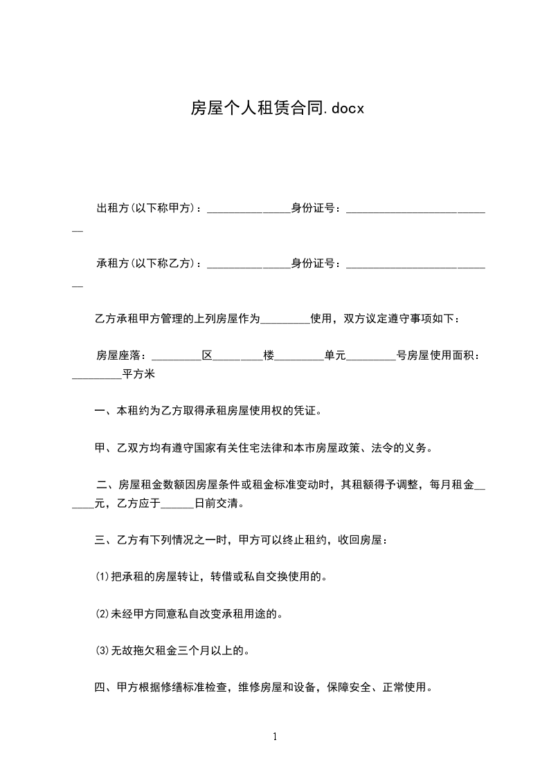 承租方(乙方):_____,身份证号码
