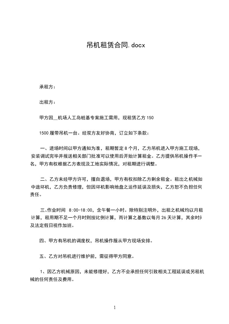 四、甲方有吊机的调度权,吊机操作服从甲方现场安排。