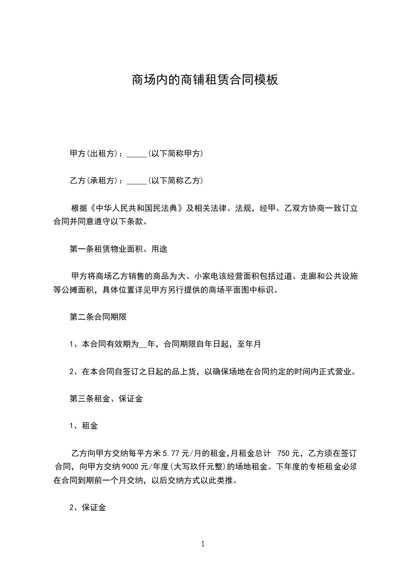 第二条:在双方签订合同的3天内,由乙方付给甲方商铺租赁押金人民币1万元整,该押金不计利息。在合同期满后同甲方返还给乙方。该商铺第一年至第叁年的月租为人民币__元整。第四年到第八年每年租金递增5%。第四年月租金为人民币__元整。第五年月租金为人民币__元整。第六年月租为人民币__元整。第七年月租金为人民币__元整。第八年月租金为人民币__元整。每月在10号前交清商铺月租金。若乙方逾期15日未交租金,每天应加收月租金的3%作为违约金。逾期1个月未交清租金,合同作废,押金不煺