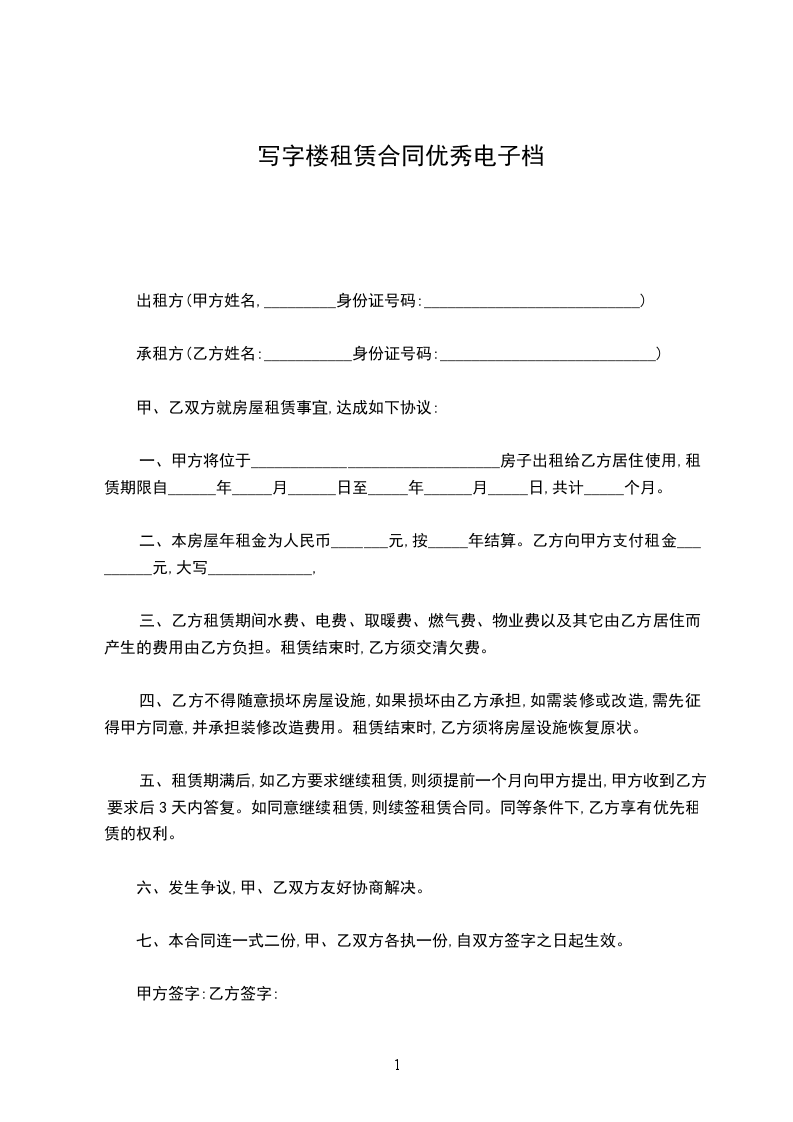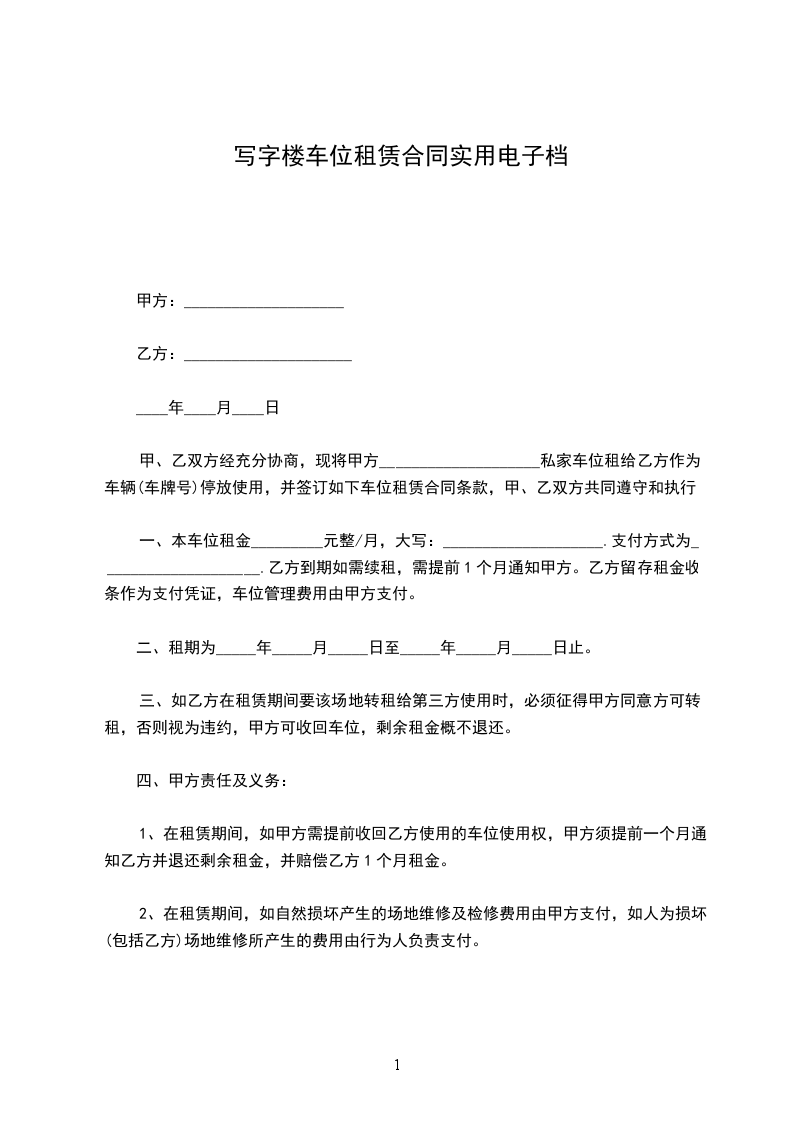出租方:_____(以下简称甲方)_____________.