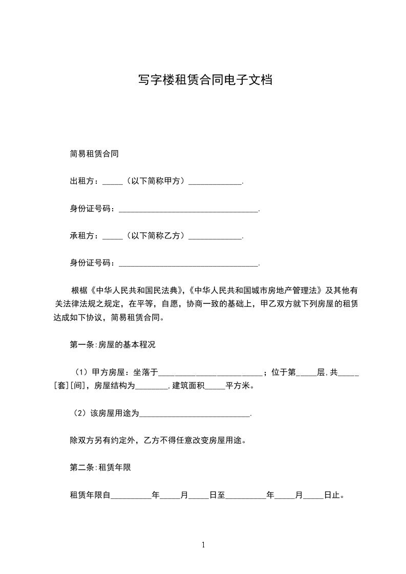 根椐《中华人民共和国民法典》,《中华人民共和国城市房地产管理法》及其他有关法律法规之规定,在平等,自愿,协商一致的基础上,甲乙双方就下列房屋的租赁达成如下协议,简易租赁合同。