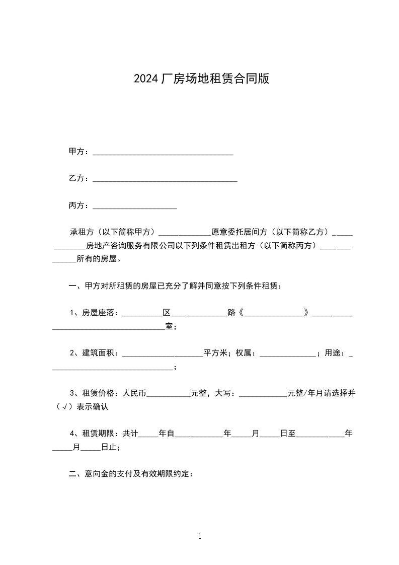 承租方(以下简称甲方)_____________愿意委托居间方(以下简称乙方)_____________房地产咨询服务有限公司以下列条件租赁出租方(以下简称丙方)______________所有的房屋。