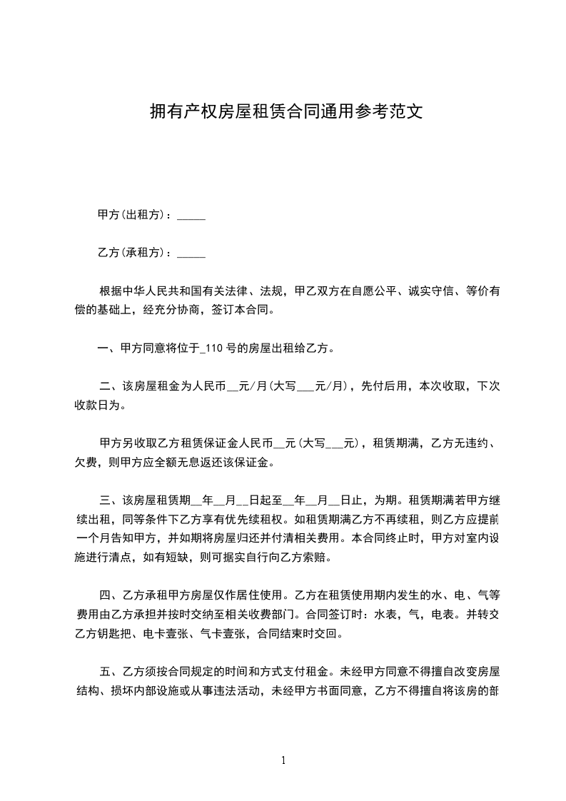 一、甲方同意将位于_110号的房屋出租给乙方。