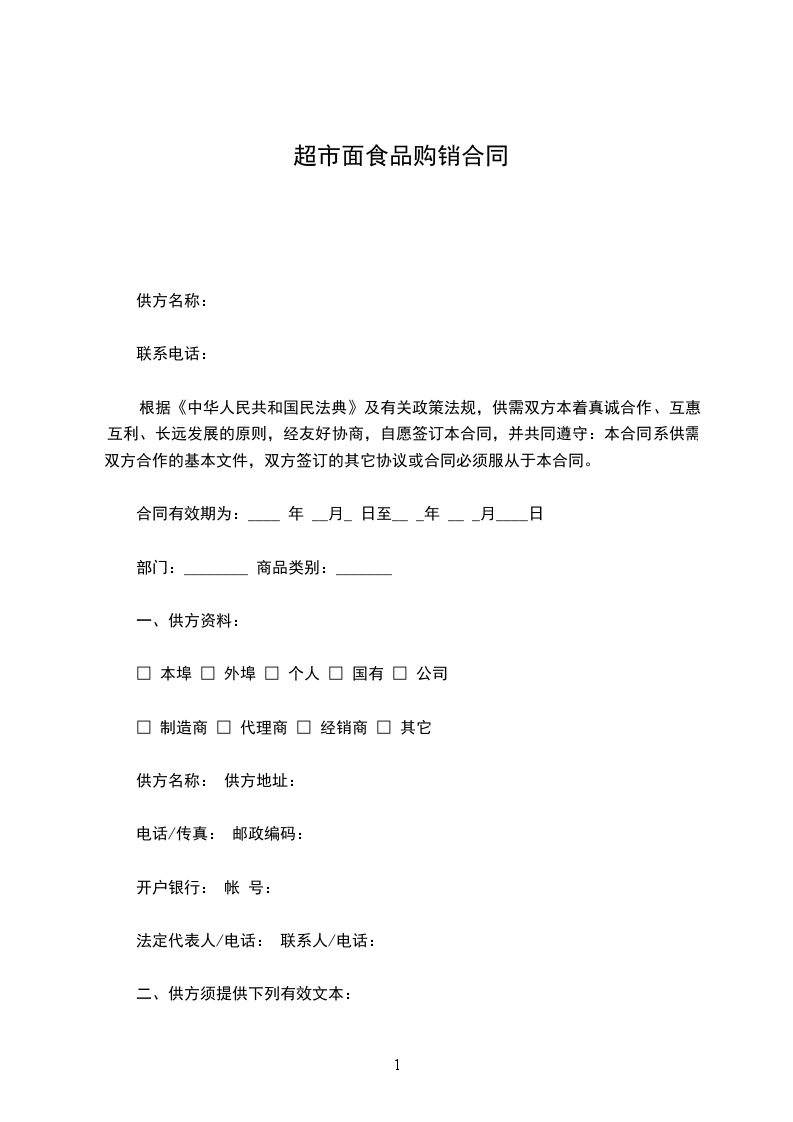 根据《中华人民共和国民法典》及有关政策法规,供需双方本着真诚合作、互惠互利、长远发展的原则,经友好协商,自愿签订本合同,并共同遵守:本合同系供需双方合作的基本文件,双方签订的其它协议或合同必须服从于本合同。