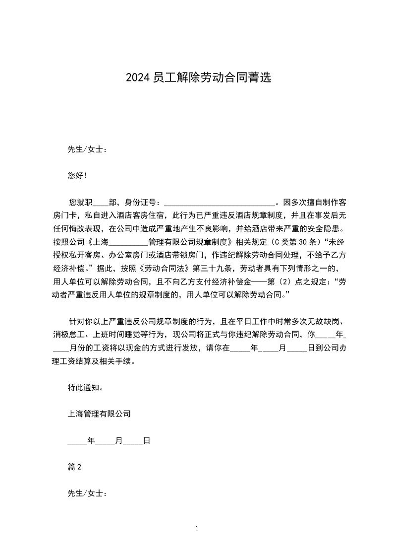 一、解除劳动合同的日期为:__________________年__月__日;