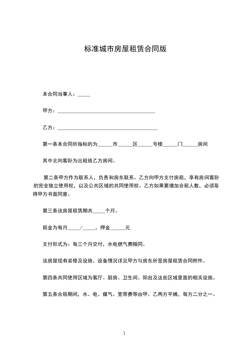 甲乙双方于_年__月_日,签订了房屋租赁合同,合同内容为乙方承租甲方位于的房间,房间面积为_____平方米,房租单价为(含物业费),合同有效期年,至__年__月__日到期。合同签订时乙方交纳了相当于2个月房租的保证金。