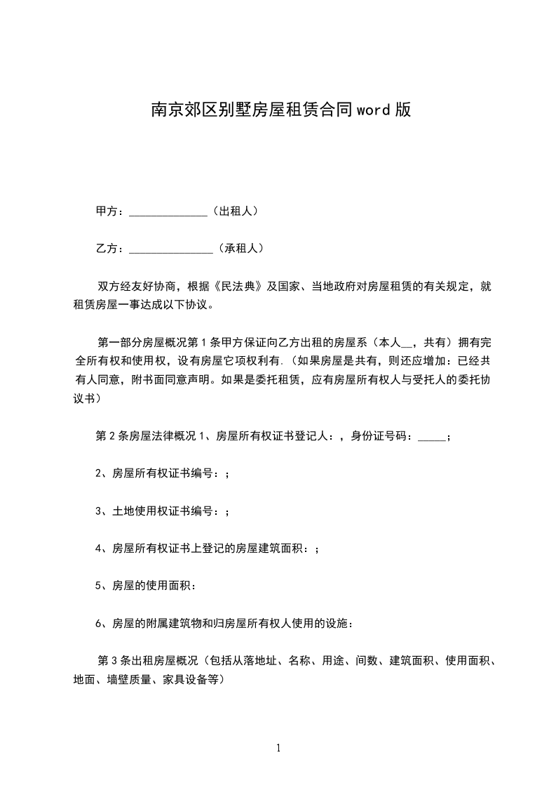 第一部分房屋概况第1条甲方保证向乙方出租的房屋系(本人__,共有)拥有完全所有权和使用权,设有房屋它项权利有.(如果房屋是共有,则还应增加:已经共有人同意,附书面同意声明。如果是委托租赁,应有房屋所有权人与受托人的委托协议书)