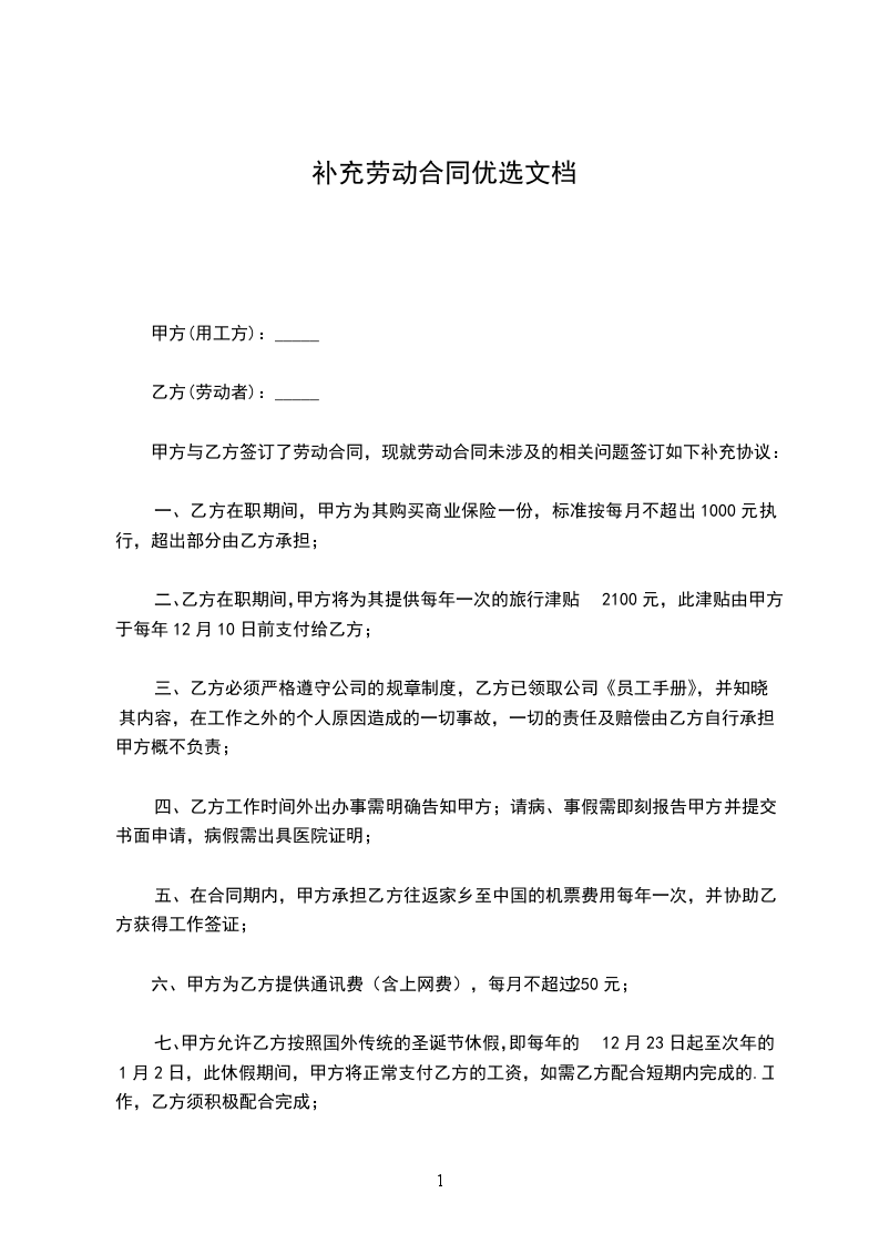 甲方与乙方签订了劳动合同,现就劳动合同未涉及的相关问题签订如下补充协议:
