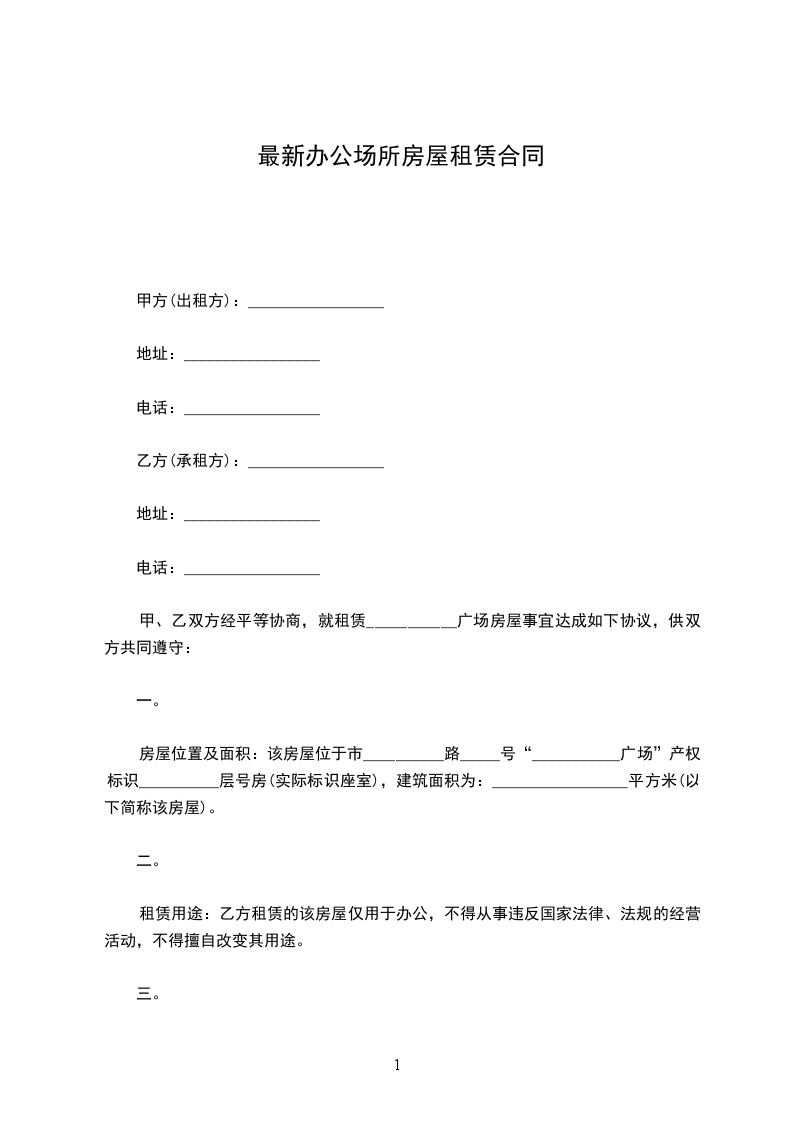二、租赁用途:______乙方租赁的该房屋仅用于办公,不得从事违反国家法律、法规的经营活动,不得擅自改变其用途。