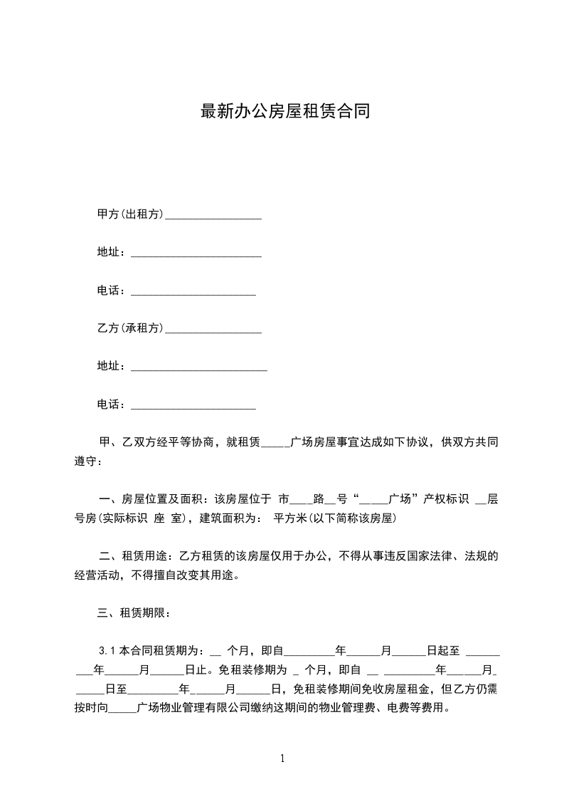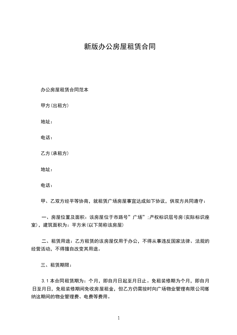 3.1本合同租赁期为:_____________个月,即自______年______月______日起至__________年______月______日止。免租装修期为_______个月,即自______年______月_______日至______年________月__________日,免租装修期间免收房屋租金,但乙方仍需按时向__________公司缴纳这期间的物业管理费、电费等费用。