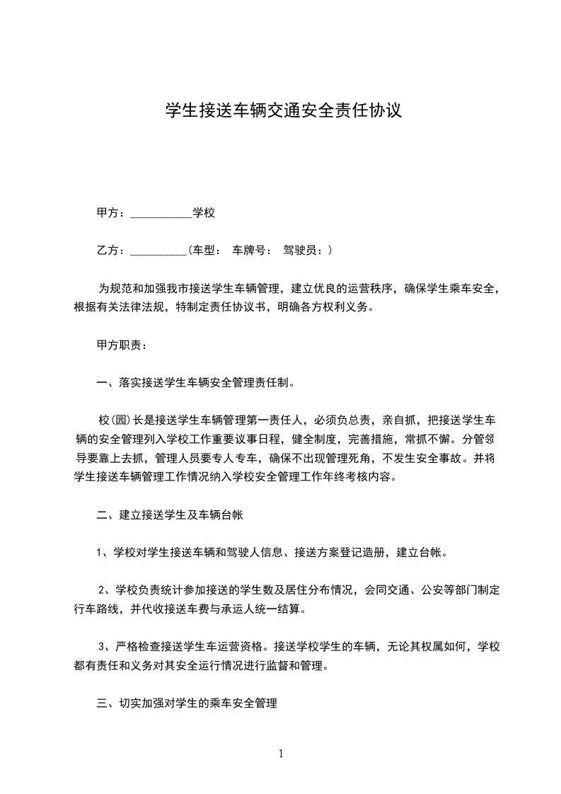 为规范和加强我市接送学生车辆管理,建立优良的运营秩序,确保学生乘车安全,根据有关法律法规,特制定责任协议书,明确各方权利义务。