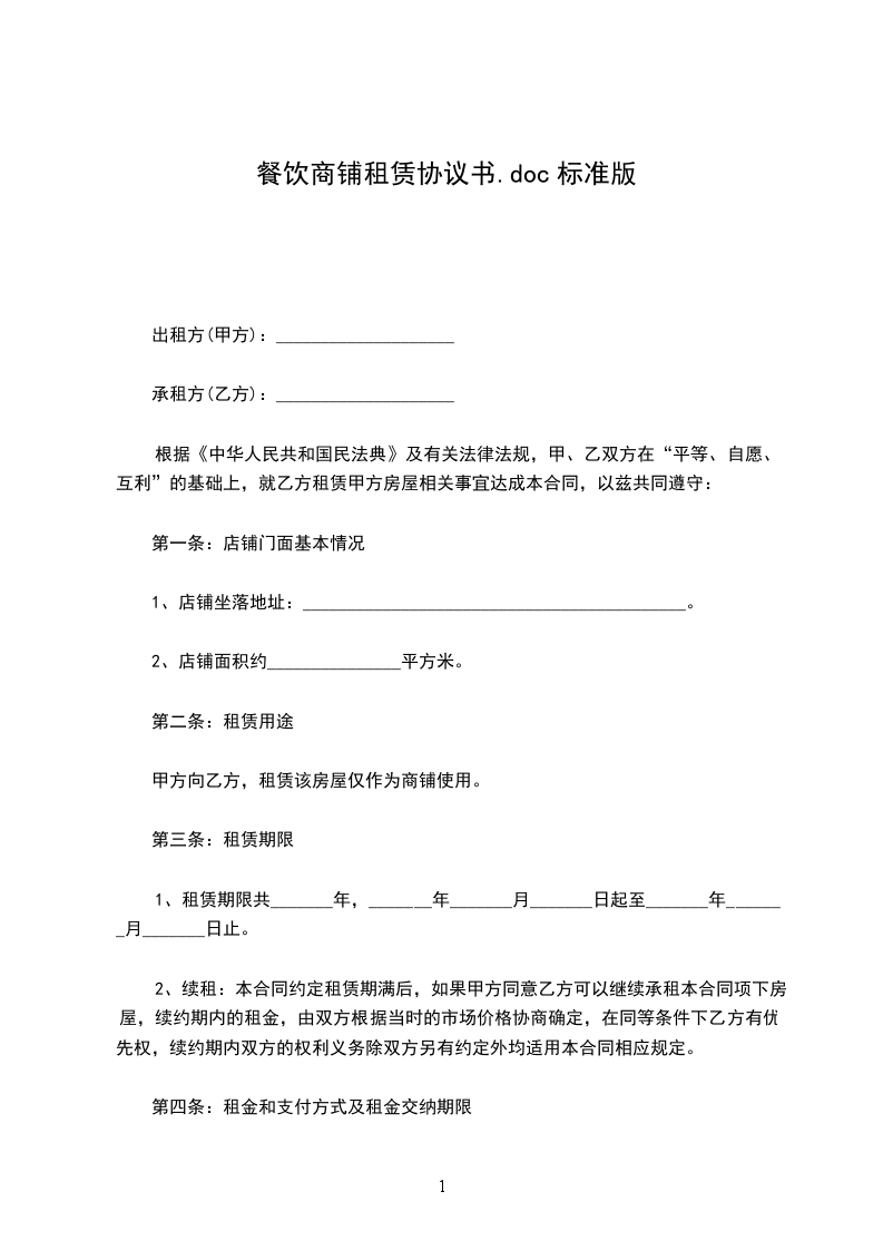 1、租赁期限共_______年,_______年_______月_______日起至_______年_______月_______日止。